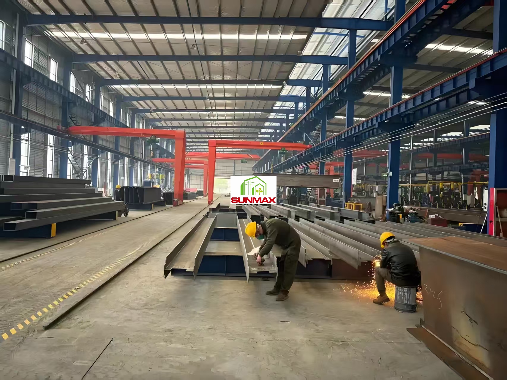Sunmax factory workshops are constructed using high-quality steel frameworks known for corrosion resistance, fire safety, and earthquake resistance. These materials ensure durability and sustainability, making our factory workshop solutions reliable for long-term industrial operations.